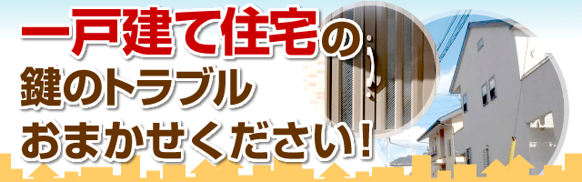 タッチして今すぐお電話!フリーダイヤル:0120-26-9690玄関の鍵を失くした、鍵にいたずらされたみたいで回らない…。一戸建て住宅の鍵のトラブル・お困りごとはおまかせください。深夜・早朝・休日も対応、年中無休で駆けつけます!